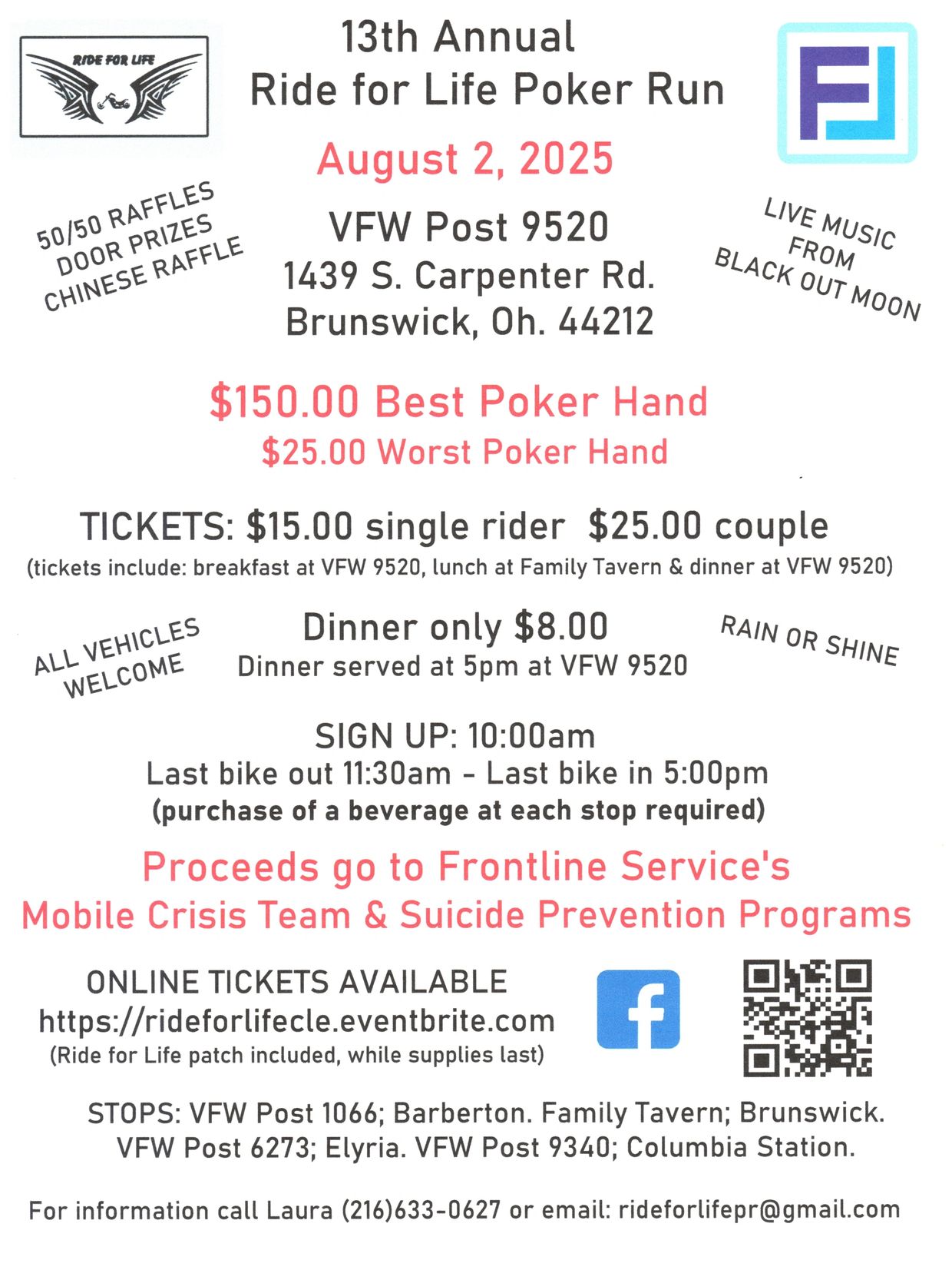 Each of our stops will stamp your Poker Run card. A PURCHASE OF A BEVERAGE IS REQUIRED AT EACH STOP. IF YOU DO NOT PURCHASE A BEVERAGE, YOUR CARD WON'T GET STAMPED.